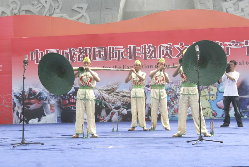 “大竹竹唢呐及制作工艺”是指产生并流传于大竹境内独有的一种民间音乐。在吹奏上,有齐奏、独奏、重奏、轮奏。表现形式多样,祖宗秘传的隐形换气法、娴熟多变的指法,加之气息、嘴劲的控制,使演奏生动传神。更奇特的是,还有竹唢呐吹奏高手,一人可同时表演口吹四只唢呐、鼻吹两只唢呐,口鼻同时吹四只唢呐的特技。曲目丰富,风格多样,现已搜集整理的曲牌有200余种。