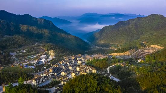 巴山云顶省级旅游度假区,位于达州市宣汉县东北部,地处成都、重庆、西安“西三角经济圈”腹心地带,紧邻巴山大峡谷文旅扶贫景区核心区,是大巴山国家地质公园的重要组成部分、国家级非物质文化遗产“川东土家族薅草锣鼓”衍生地。度假区占地面积约20.19平方公里,以大巴山山地自然生态环境和原生村寨为载体,以巴人民俗文化为特色,集户外运动、民俗体验、康体养生、山地度假于一体。夏季平均气温20℃-26℃,区域内森林覆盖率达68%,植被覆盖率达83%,负氧离子浓度最高可达3580个/立方厘米,是川东北避暑康养度假地的典型代表;是川东玩雪的优先地。