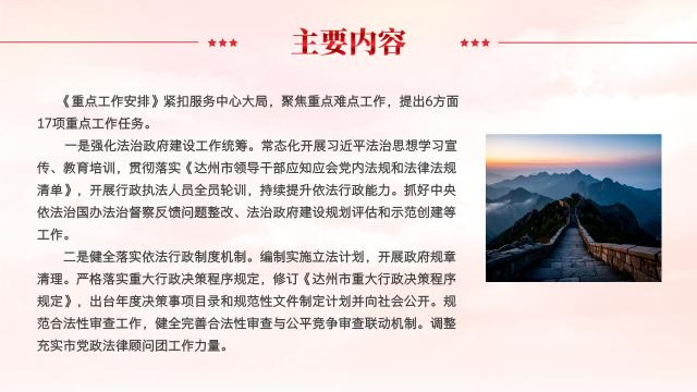 图解《达州市人民政府办公室关于印发达州市人民政府2025年法治政府建设重点工作安排的通知》