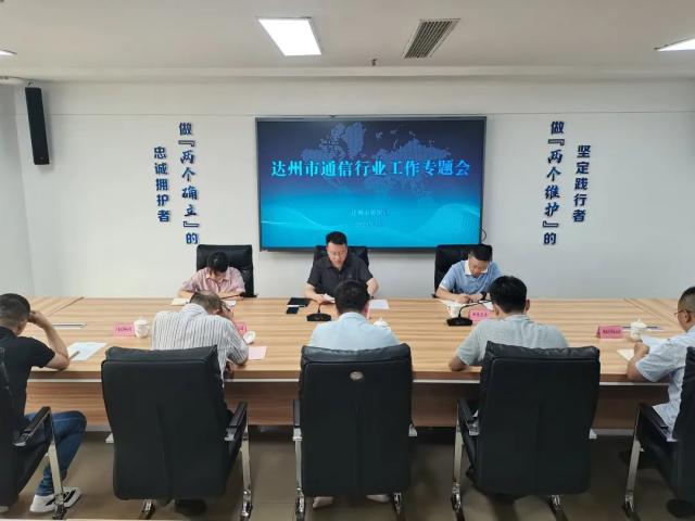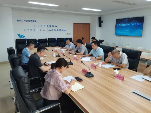 2025年7月16日下午,市数据局组织召开通信行业工作专题会,局党组成员、副局长彭晨峰主持会议并讲话,市通发办副主任李扬安排部署重点工作,中国电信、移动、联通、广电、铁塔达州分公司分管领导参加会议。