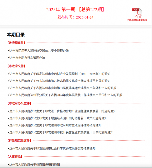 及时发布达州市人民政府工作报告、法治政府建设年度报告、重大项目推进情况、立法工作计划和招考录用等信息,有效保障了公民、法人和其他组织依法获取政府信息。