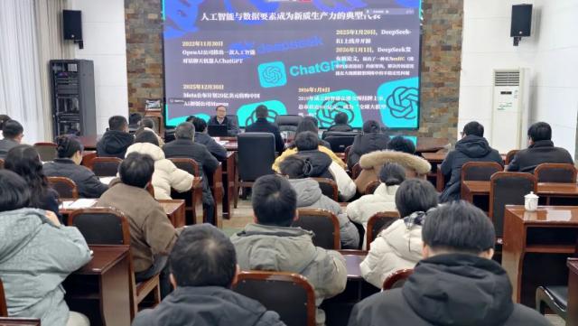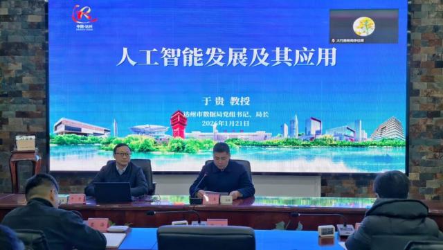 1月21日,达州市数据局党组书记、局长于贵应邀到市商务局,以“人工智能发展及其应用”为题作专题授课。市商务局党组书记、局长简奎主持会议。