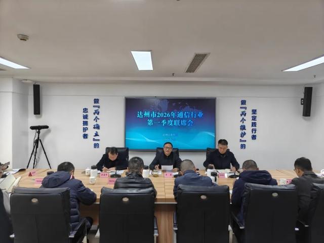 2月2日下午,市数据局组织召开2026年通信行业第一季度联席会。局党组书记、局长于贵主持会议并讲话,市数据局、市通发办相关分管负责同志,中国电信、移动、联通、广电、铁塔、通服达州分公司主要领导及相关分管领导参加会议。