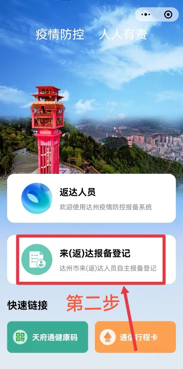 第二步:点击来(返)达报备登记